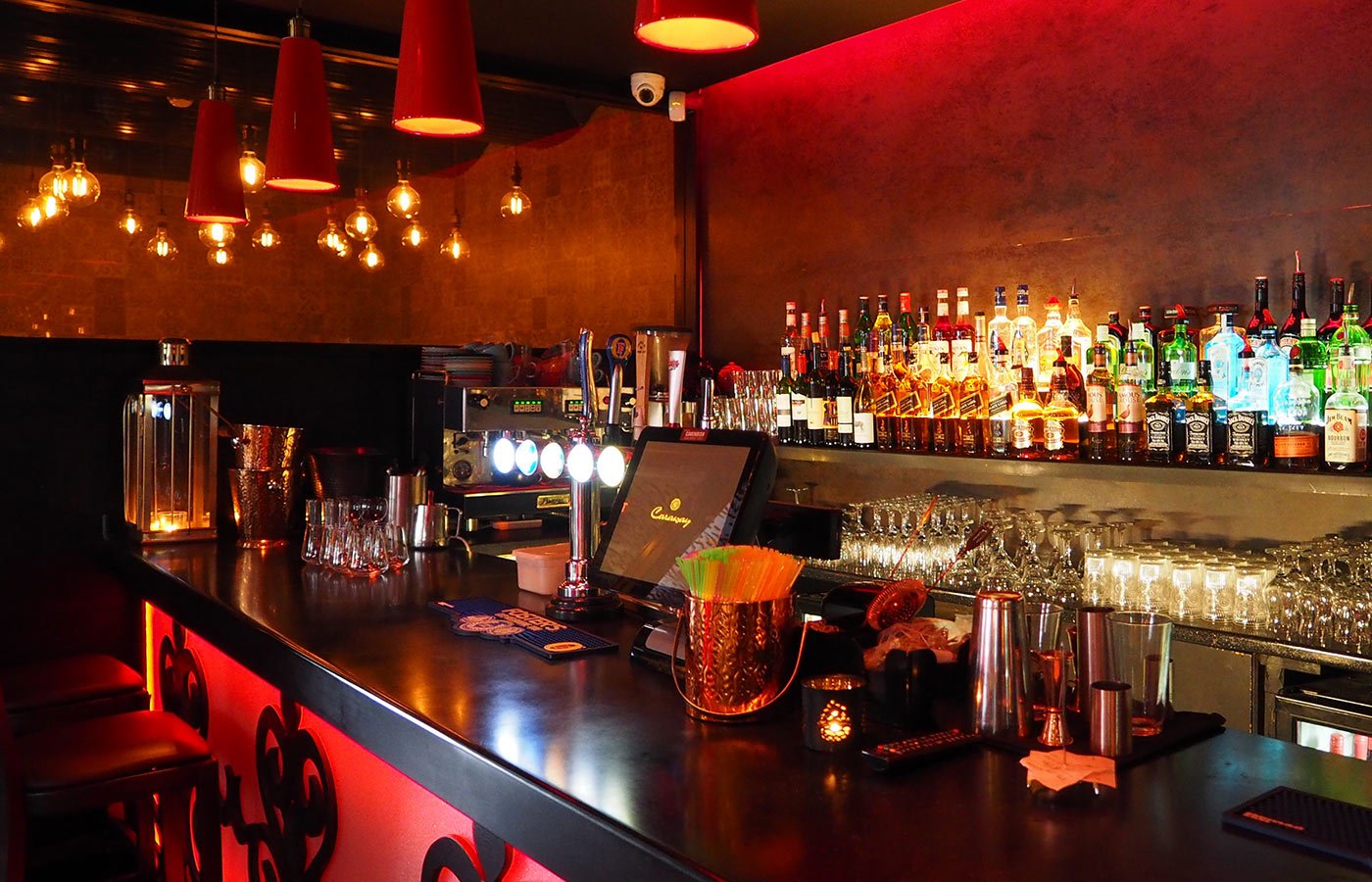 - Flat-screen TV with International channels.